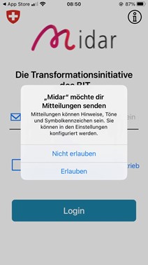 Die Anwendung richtet sich an Mitarbeitende der Bundesverwaltung (primär BIT) und liegt in einer iOS- und Android-Version vor. Sie ist im App Store von Apple, resp. im Google Play Store verfügbar. Du kannst die Midar-App auf deinem geschäftlichen oder privaten Gerät installieren.